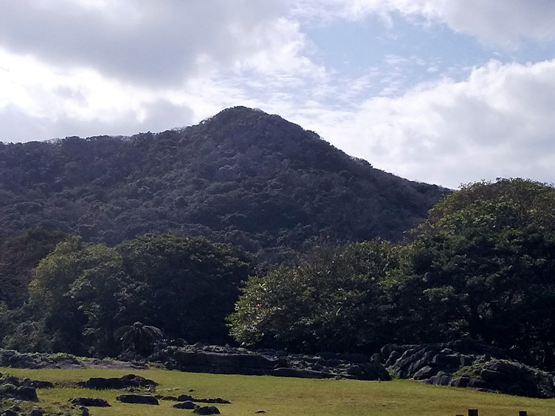 琉球七御嶽のひとつと言われ、規模としては沖縄最大級の広さを持ちます。登り口には古木に囲まれた御嶽の祭場があり、その横から樹木の中に入り、急な岩場のロープ道を最頂部の拝所まで登る予定です。